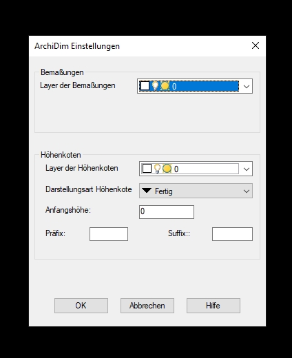 - Dialogbox zur Einstellung von Layer oder Darstellung der Koten