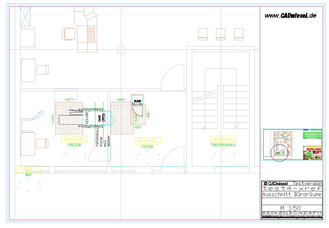 Dieses Programm erlaubt es Ihnen schnell aus dem Modellbereich einen Ausschnitt zu drucken, ohne ein Drucklayout mit Planrahmen und Planstempel anlegen zu müssen. Das Programm ist so ausgelegt, das der Anwender mit minimal 3 Klicks einen Zeichnungsausschnitt ausdrucken kann, der einen Planrahmen, eine Planübersicht und einen Planstempel enthält.
