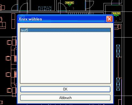 Ist der Zeichnung nur ein Xref zugeordnet, wird der oder die Layer in das Xref verschoben, sind mehrere Xrefs der Zeichnung zugeordnet, erscheint eine Dialogbox, in der dann das Xref ausgewählt werden muss, in welches die Layer verschoben werden sollen.